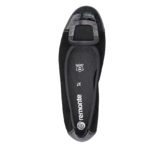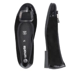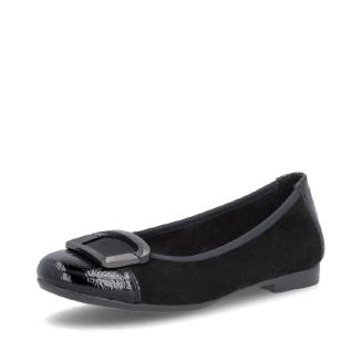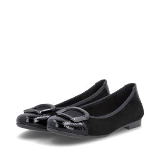 Ballerina i svart nubuck med lackdetaljer framtill med dekorativt spänne framtill