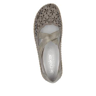 Omtyckt ballerina från Rieker i beige skinn med stansat blommönster.