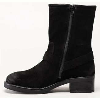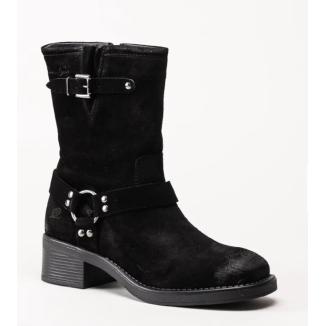 Svarta boots i oljad mocka från Rosa Negra. Tuffa boots med silverfärgade spännen och detaljer på utsidan. Vadderat foder i textil och innersula i skinn, yttersula i gummi. Coola boots som piffar upp din outfit!.Spänne upptill med sprunn samt blixtlås på insidan.Bra gummisula.