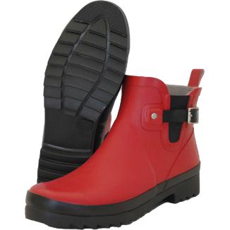 Gummistövlar från Råå Design. Låg modell som är tillverkade i naturgummi med dekorativt spänne på utsidan, resår på in- och utsidan för lätt på- och avtagning. Uttagbar innersula. Grov yttersula i gummi med klack.