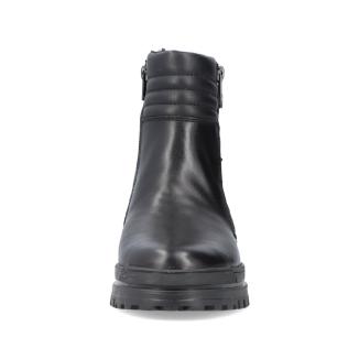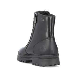 Känga från Rieker i svart skinn med blixtlås både på insidan och utsidan. Varmfodrad och med Rieker Tex membran som gör skorna vattenavvisande. Grov yttersula med utfällbara broddar.