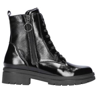 Stilren och trendig Waldläufer damkänga i glansigt patenterat läder. Kängan har en rymlig passform Kvidd som ger gott om plats för tårna – perfekt för dig med känsliga fötter. Den är lätt och utrustad med både snörning och praktiska dragkedjor på båsa sidor som gör den smidig att ta på och av.