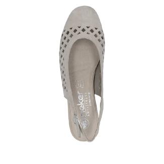 Sandalett från Rieker i beige nubuck. Extra vid läst med ställbar rem med spänne runt vristen.