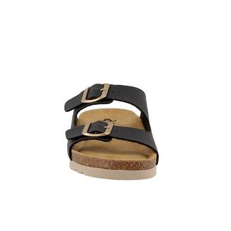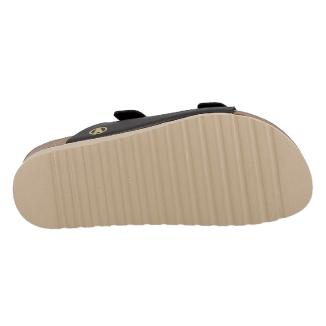 Slipin sandal Tia från Axelda i svart syntet på lätt kiklack.. Tillverkad med skinnklädd sula, fotbädden gjord med latexmaterial i kärnan vilket ger en extra stötdämpande effekt! Extra kudde i fotbädden motverkar hälsporre. Sula i Eva. Ovandel av syntetmaterial klädd med skön textil invändigt och två ställbara remmar för bästa passform .
