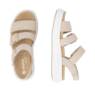 Skön komfort sandal från Remonte i beige skinn .Ställbara band med kardborre och extra bred läst.Uttagbar innersula för egna inlägg.