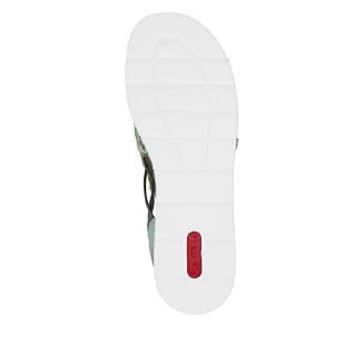 Sandalett från Rieker i grönt med blommigt mönster. Resår på sidorna för att lätt komma i och med en lite mindre kilklack på ca 4,5 cm.