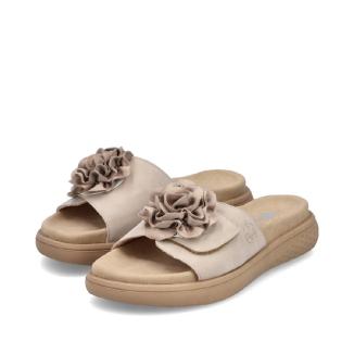 Omtyckt Rieker sandal i beige med dekorativ blomma .Ställbart kardborreband under blomman.