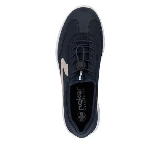 Skön damsko i marinblåttt med elastisk snabbsnörning med stopper och skön memosoft sula mot foten.Mycket omtyckt modell från Rieker som är lätt att komma i.