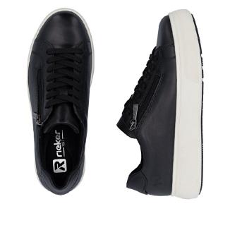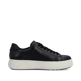 Denna snygga sneaker från sköna Rieker erbjuder både stil och komfort. Den är tillverkad i svart skinn material, vilket gör den bekväm att bära hela dagen.