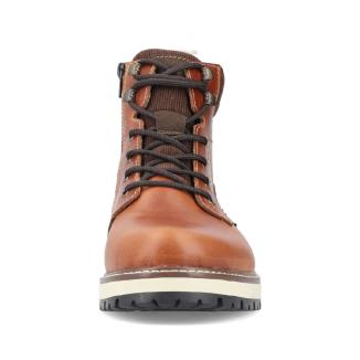 Ullfodrad känga från Rieker i brunt skinn. Dragkedja på sidan, snörning fram för bästa passform och Riekers texmaterial så skorna blir vattenavvisande. Bra greppsula i gummi med utfällbara broddar bak och fram för säkert grepp vid halka. Praktiskt att kunna fälla in vid besök hos butiker etc.