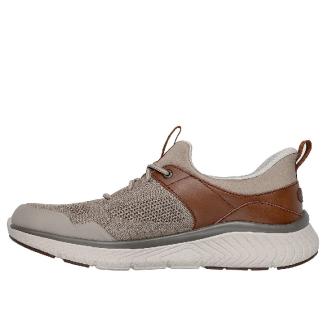 Stig in i praktisk gåkomfort med Skechers Slip-ins® Relaxed Fit®: Arch Crosser - Emeric. Designad med vår Heel Pillow™, har denna modell med stretch-snören en ovandel i stickat och syntetmaterial med en avtagbar Skechers Arch Fit® inläggssula.
