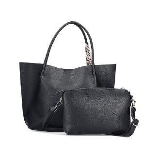 Ett set med 2 st väskor från Rieker i svart skinnimitation. Den större väskan har ett fast handtag och stängs med magnetknäppning. Den mindre har en avtagbar, justerbar axelremmed och stängs med dragkedja.