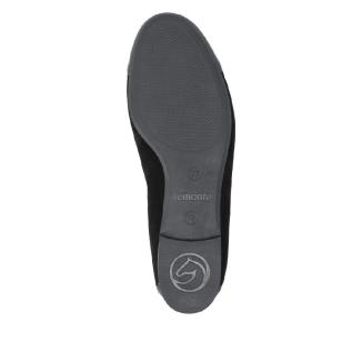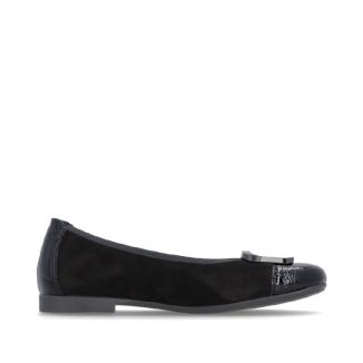 Ballerina i svart nubuck med lackdetaljer framtill med dekorativt spänne framtill