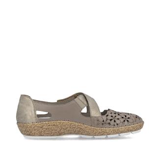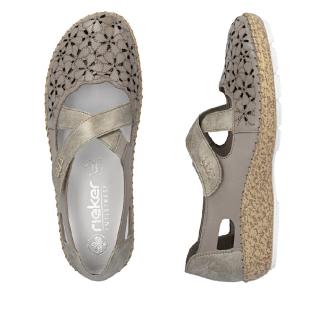 Omtyckt ballerina från Rieker i beige skinn med stansat blommönster.