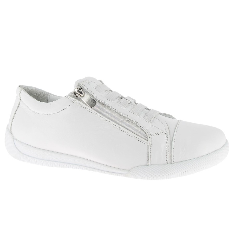 Lätt och bekväm Sneaker från Charlotte i vitt skinn med resårsnörning samt blixtlås på sidan som avlastar hela foten och ger behaglig stötdämpning i alla steg.
