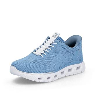 Slipin - Ready To Go. Sneaker från Rieker i blått som du bara kliver i. Lätt modell i textil och bungeesnören framtill. Skön dämpande memosoft sula mot foten samt dämpande yttersula i gummiblandning.