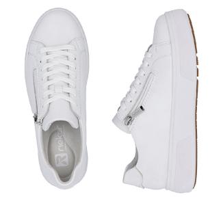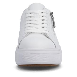 Denna snygga sneaker från sköna Rieker erbjuder både stil och komfort. Den är tillverkad i vitt skinn material, vilket gör den bekväm att bära hela dagen.