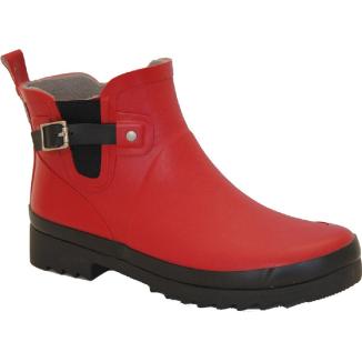 Gummistövlar från Råå Design. Låg modell som är tillverkade i naturgummi med dekorativt spänne på utsidan, resår på in- och utsidan för lätt på- och avtagning. Uttagbar innersula. Grov yttersula i gummi med klack.