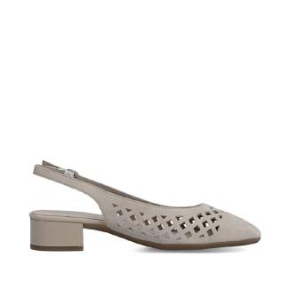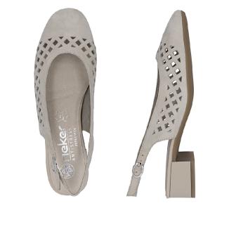 Sandalett från Rieker i beige nubuck. Extra vid läst med ställbar rem med spänne runt vristen.