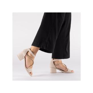 Pumps från Rieker i gammelrosa nyans med söta dekorationer med pärlor på banden framtill .Smalt band med karborreband runt vristen
