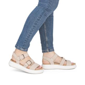 Skön komfort sandal från Remonte i beige skinn .Ställbara band med kardborre och extra bred läst.Uttagbar innersula för egna inlägg.
