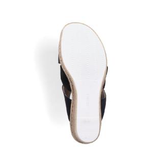 Omtyckt slipin sandalett på kilklack i svart med snygg dekorerad rosett framtill