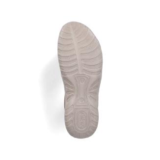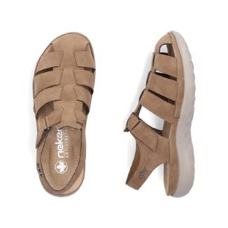 Ny modell sandal från Rieker i brunt med stängd tå och med skön dämpande sula mot foten .Kardborreknäppning på sidan.