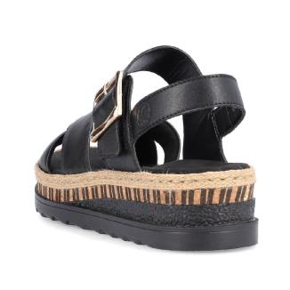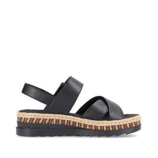 Favorit från Rieker bland sandalerna i svart skinn med kardborre knäppning på sidorna och fräck sula med mönster.