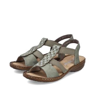 Omtyckt modell från Rieker i grönt med söta dekorationer ovanpå .Breda resårer på sidorna för bästa passform