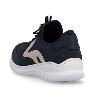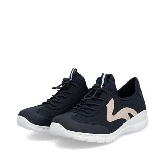 Skön damsko i marinblåttt med elastisk snabbsnörning med stopper och skön memosoft sula mot foten.Mycket omtyckt modell från Rieker som är lätt att komma i.