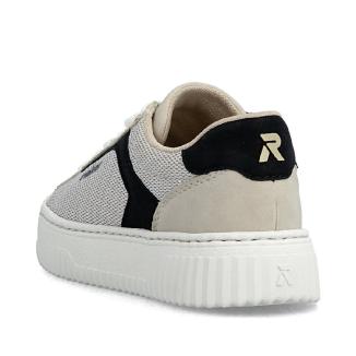 Sneaker från Rieker i beige med partier av olika material och färger i beige och svart. Lätt modell med uttagbar innersula för egna inlägg. Både snörning och blixtlås för bästa passform.