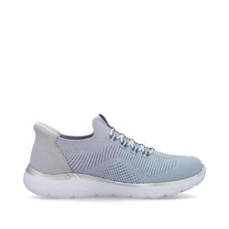 Slipin - Ready To Go. Sneaker från Rieker i ljusblått som du bara kliver i. Lätt modell med resår framtill. Skön dämpande memosoft sula mot foten samt dämpande yttersula i gummiblandning.