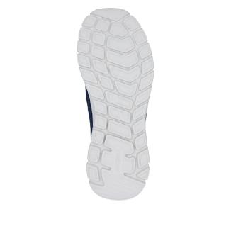 Herrsko från Rieker i marinblå mesh med paneler av syntetmaterial i avvikande färg. En skomodell som du bara kliver i med "sk inbyggt skohorn" och bungeesnören.