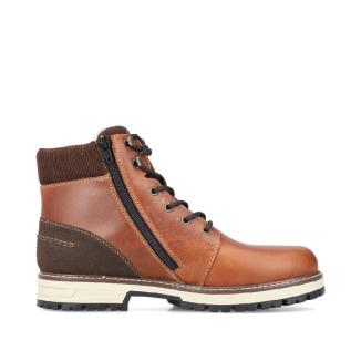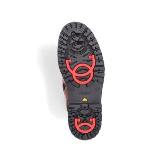Ullfodrad känga från Rieker i brunt skinn. Dragkedja på sidan, snörning fram för bästa passform och Riekers texmaterial så skorna blir vattenavvisande. Bra greppsula i gummi med utfällbara broddar bak och fram för säkert grepp vid halka. Praktiskt att kunna fälla in vid besök hos butiker etc.