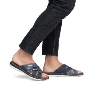 Blå slipin sandal med kryssremmar och skön mjuk antistress sula i skinn mot foten.