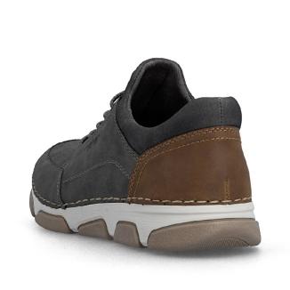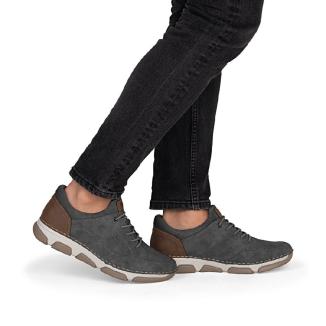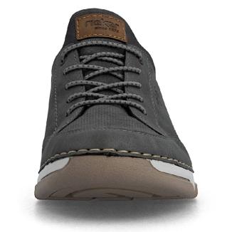 Skön grå sneaker från Rieker med bungesnörning. Sliponmodell av syntet i olika texturer. Bred läst och uttagbar innersula.